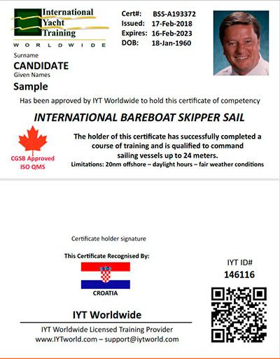 1. и 2. Bareboat skipper (Sail & Power) — cертификат позволяет самостоятельно арендовать яхту и удаляться от берега в пределах 20 морских миль.